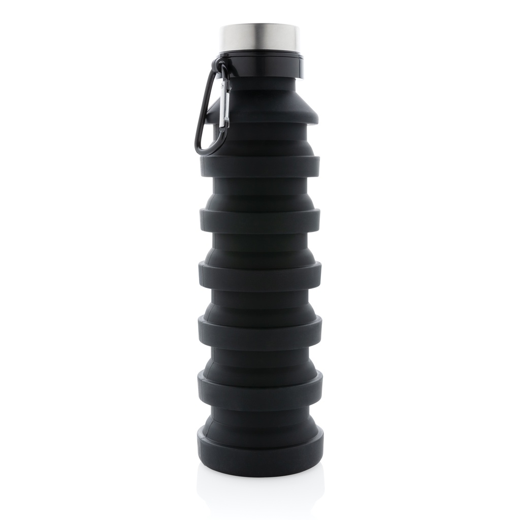 Складная силиконовая бутылка с крышкой, герметичная, черный