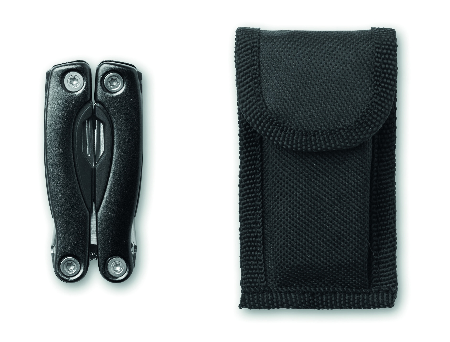 Складной многофункциональный инструмент из нержавеющей стали с рукояткой из пластика. 9 функций. Чехол из полиэстера.