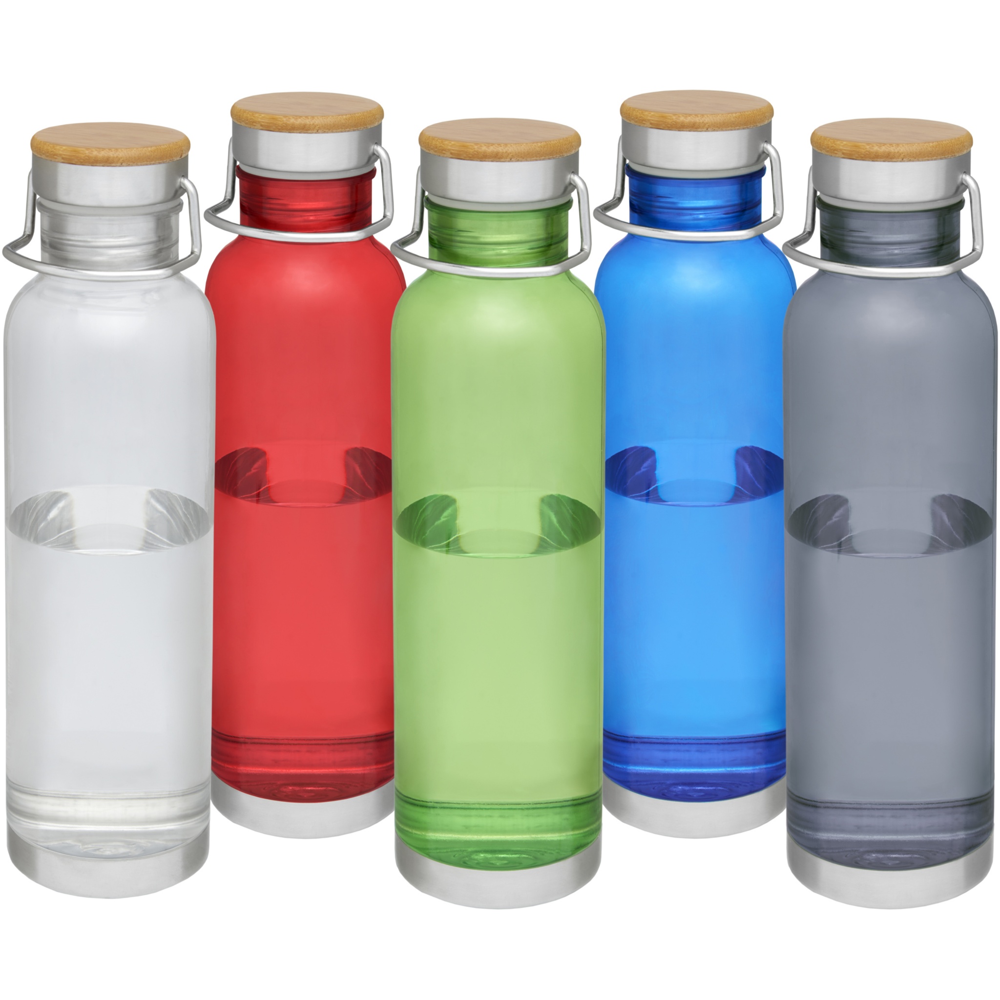Спортивная бутылка с одинарными стенками из прочного материала от Tritan™. Устойчива к ударам, не пачкается и не пропускает запахи. Имеет съемную крышку с бамбуковым колпачком и ручку для удобной переноски. Без содержания БФА. Объем 800 мл. Представлена в подарочной коробке Avenue.