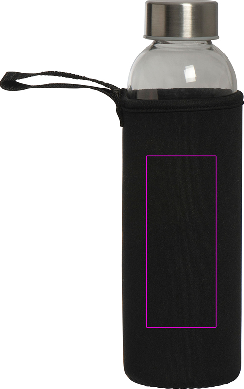 Герметичная бутылка для питья из стекла с крышкой из нержавеющей стали и емкостью 500 мл. Бутылка поставляется в соответствующем неопреновом чехле с ремнем для переноски. Мы печатаем ваш логотип в центре чехла. Гравировка на крышке или бутылке и печать на бутылке возможны по запросу.