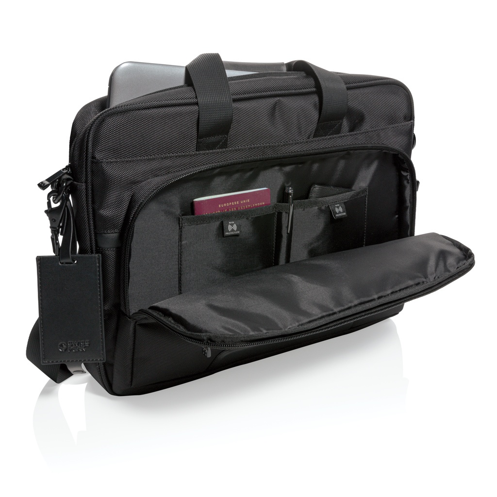 Лого трейд бизнес-подарки фото: Сумка для ноутбука Swiss Peak RPET Voyager RFID 15,6"