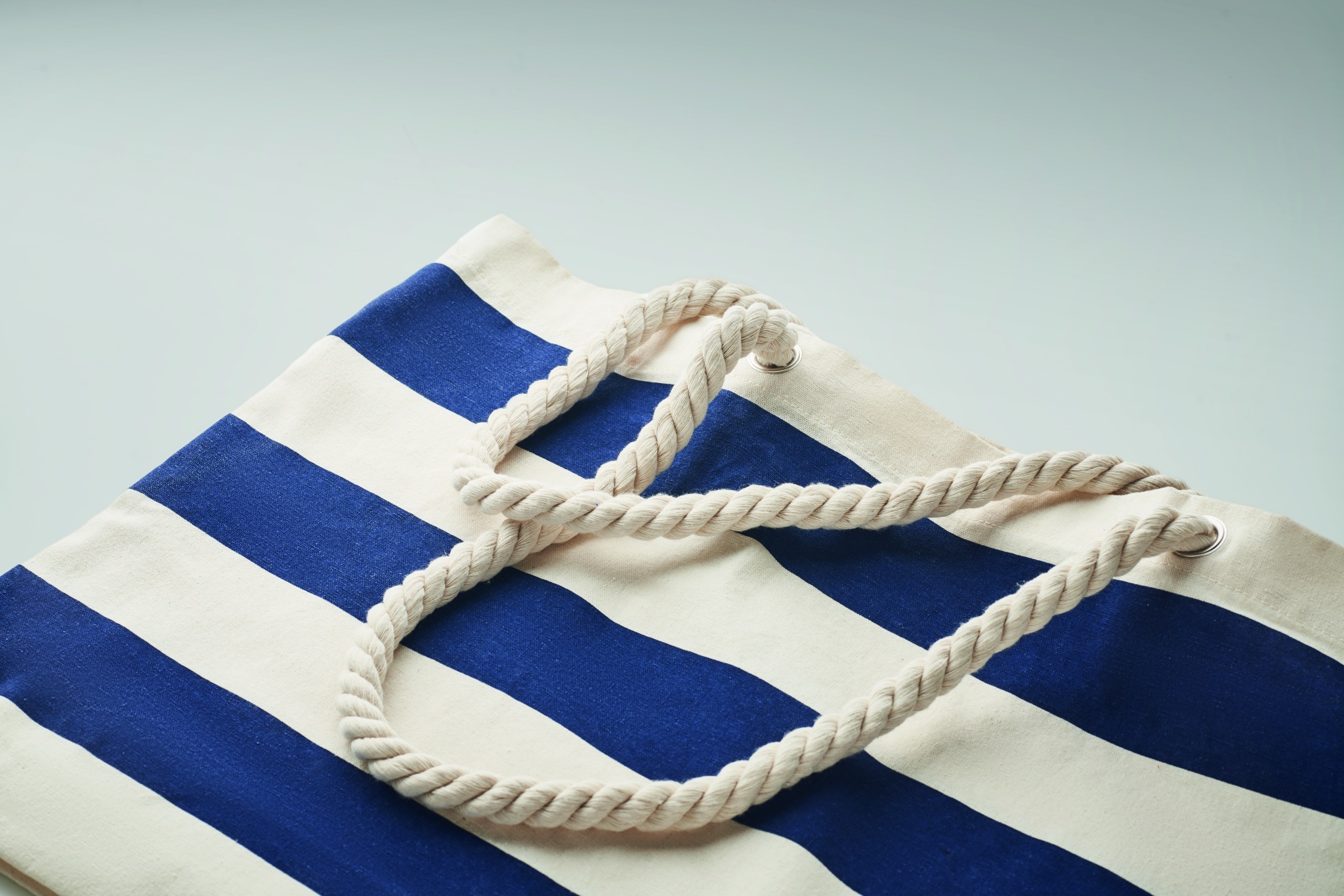 Полосатая пляжная сумка или сумка для покупок из хлопка с ручкой. 220 гр/м².