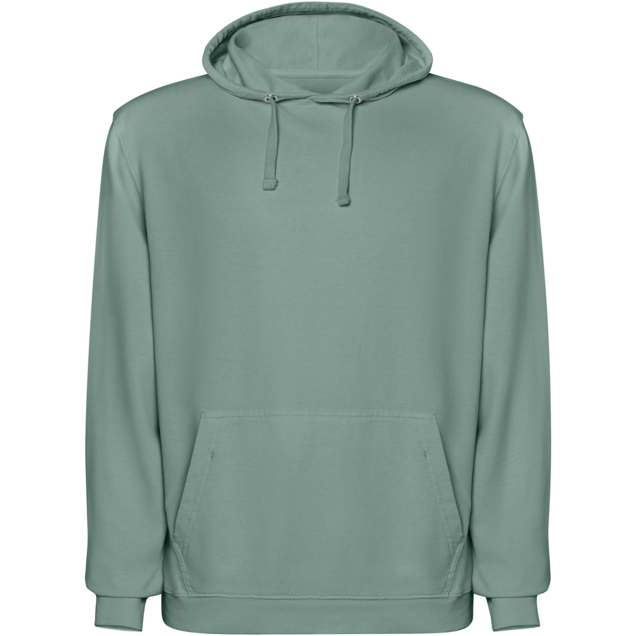 Унисекс-толстовка с капюшоном, эффект выцветшей и потертой ткани. Манжеты и подол с резинкой 2х1. Капюшон с подкладкой из однотонного трикотажа Джерси и плоскими шнурками в тон. Перекрывающий стежок тон в тон на горловине. Карман "кенгуру".