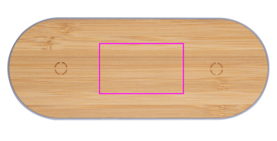 Тонкая пластиковая зарядная станция с бамбуковой поверхностью и двумя индукционными зарядными точками для смартфонов, включая кабель для зарядки. Ваш логотип будет выгравирован на станции.