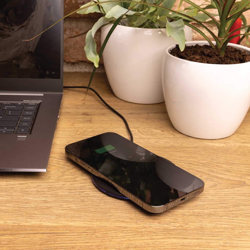 Logotrade presentreklam bild: 15W trådlös snabbladdare i RCS återvunnen plast