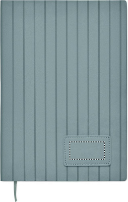 A5 anteckningsbok med mjukt, räfflat PU-omslag i 40% återvunnen och 60% PU med slät PU-lapp. 160 linjerade sidor, 70 gsm återvunnet papper (80 ark). Sidmarkör i matchande färg med polyesterband.