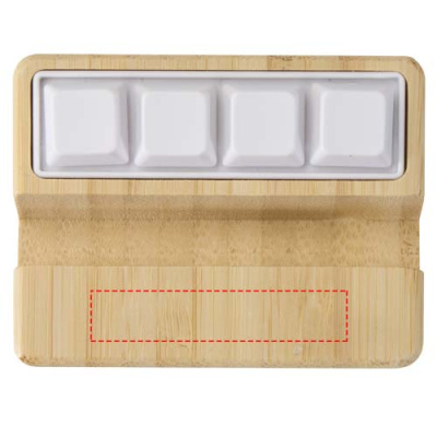 Logotrade presentreklam bild: Algol telefonställ och fidget-leksak av återvunnen plast med detaljer i bambu