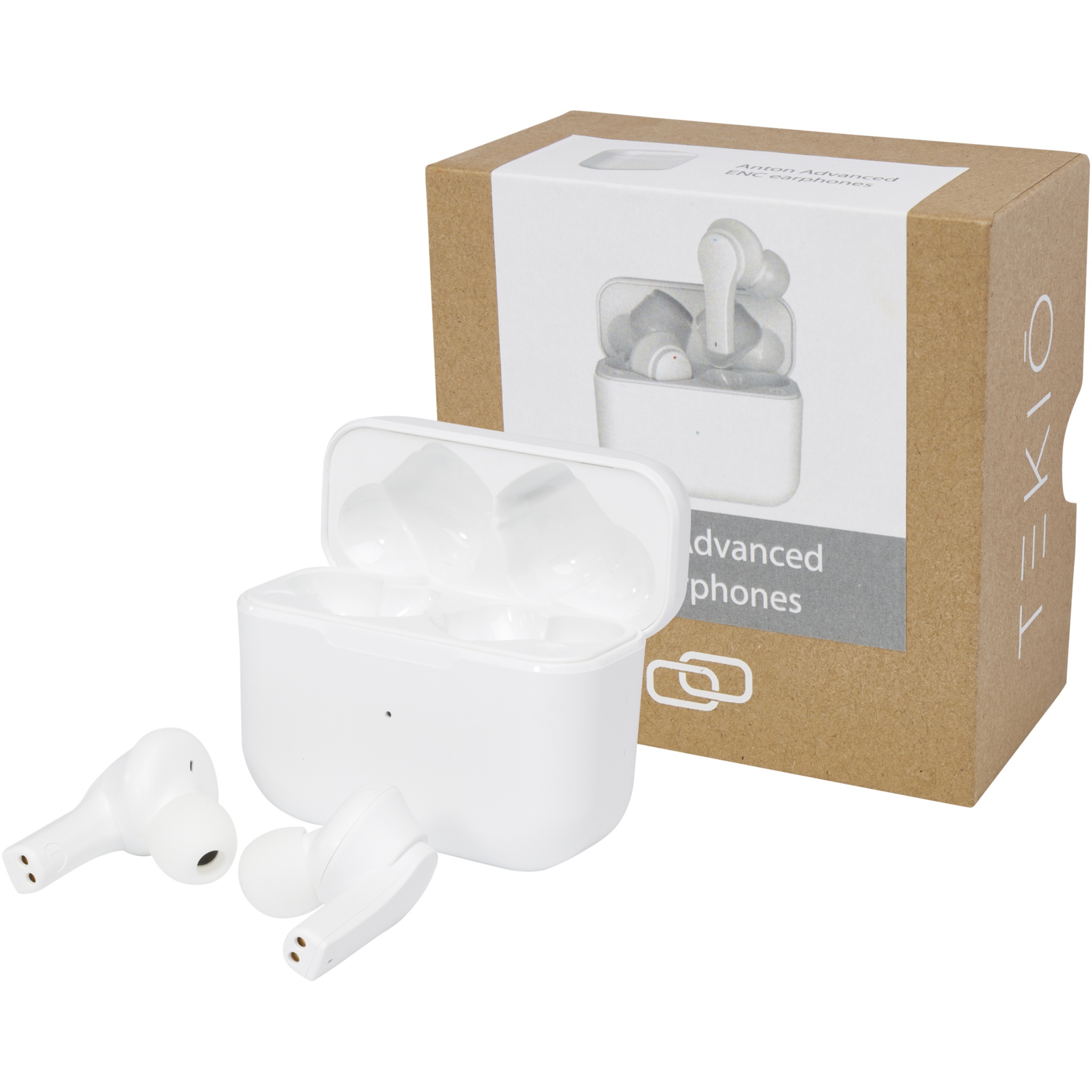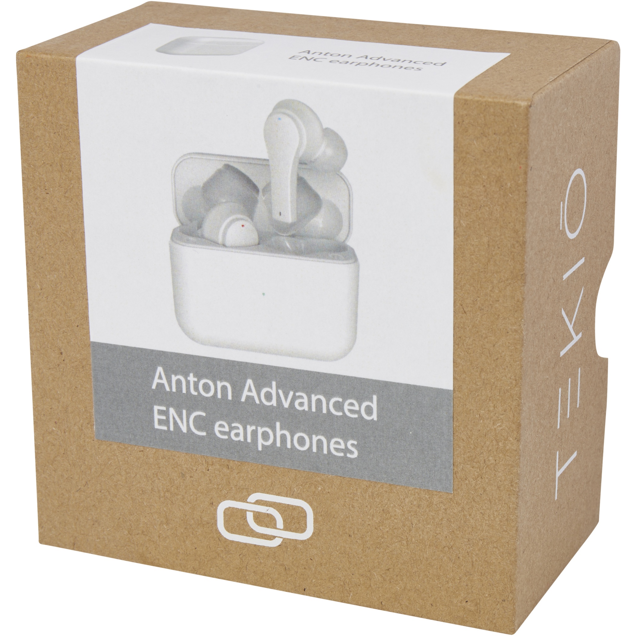 Anton Advanced ENC-öronsnäckor levereras med den senaste ljudtekniken. När fodralet öppnas kommer öronsnäckorna att slås på och automatiskt synkroniseras med varandra. Fodralet fungerar också som en powerbank för öronsnäckorna och kan laddas med den medföljande typ-C-kabeln. När fodralets batteri på 400 mAh är laddat kommer det att ladda öronsnäckorna 4 gånger från 0–100 %. Med över 4,5 timmars uppspelningstid vid maximal volym på en enda laddning är de ett måste för alla resenärer eller spelare. Med inbyggd miljöbrusreducering (ENC) blockerar öronsnäckorna omgivande ljud och fångar bara upp din röst när du använder dem för samtal eller videospel, vilket gör det enkelt för den andra personen att höra dig. Öronsnäckorna har inbyggd fjärrstyrning av musik och dubbla mikrofoner för handsfree-funktion. Det tar 1,5 timme att ladda öronsnäckorna helt, och fodralet kan laddas på under 2 timmar. Spelläge: Låg latens 70–75 ms. Levereras i vår förstklassiga Tekiō-kraftpapperslåda med ett färgstarkt klistermärke.
