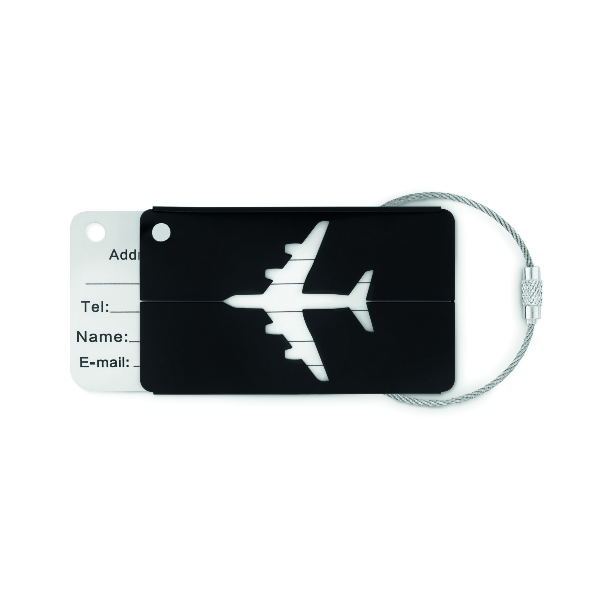 Bagagetag i Aluminium med kraftig fästvajer. Skriv dina kontaktuppgifter så kommer väskan förhoppningsvis tillbaka.