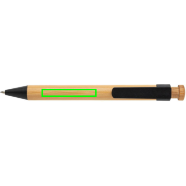 Penna i bambu och vetestrå. Sammansättning av clip är 40% vetestrå och 60% ABS. Med blått Dokumental-bläck och TC-kula för smidig skrivkänsla. Ca 1200m skrift.
