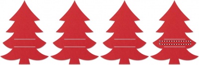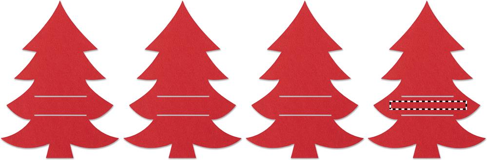 Set med 4st RPET-filtbestickhållare i julgranform i presentkartong av återvunnet papper. Eftersom alla ser fram emot julmiddagen kan dekorationerna vara lika viktiga som maten. Dekorera ditt bord och tallrikar med dsnygga bestickhållare i filt, gjorda av återvunnet PET-material.