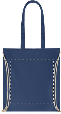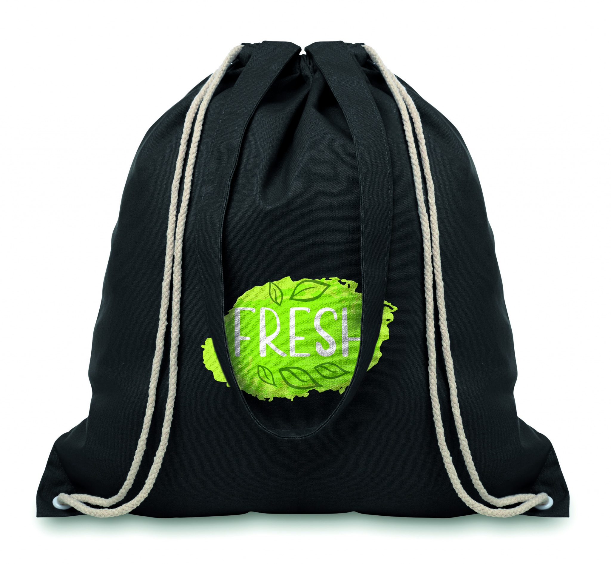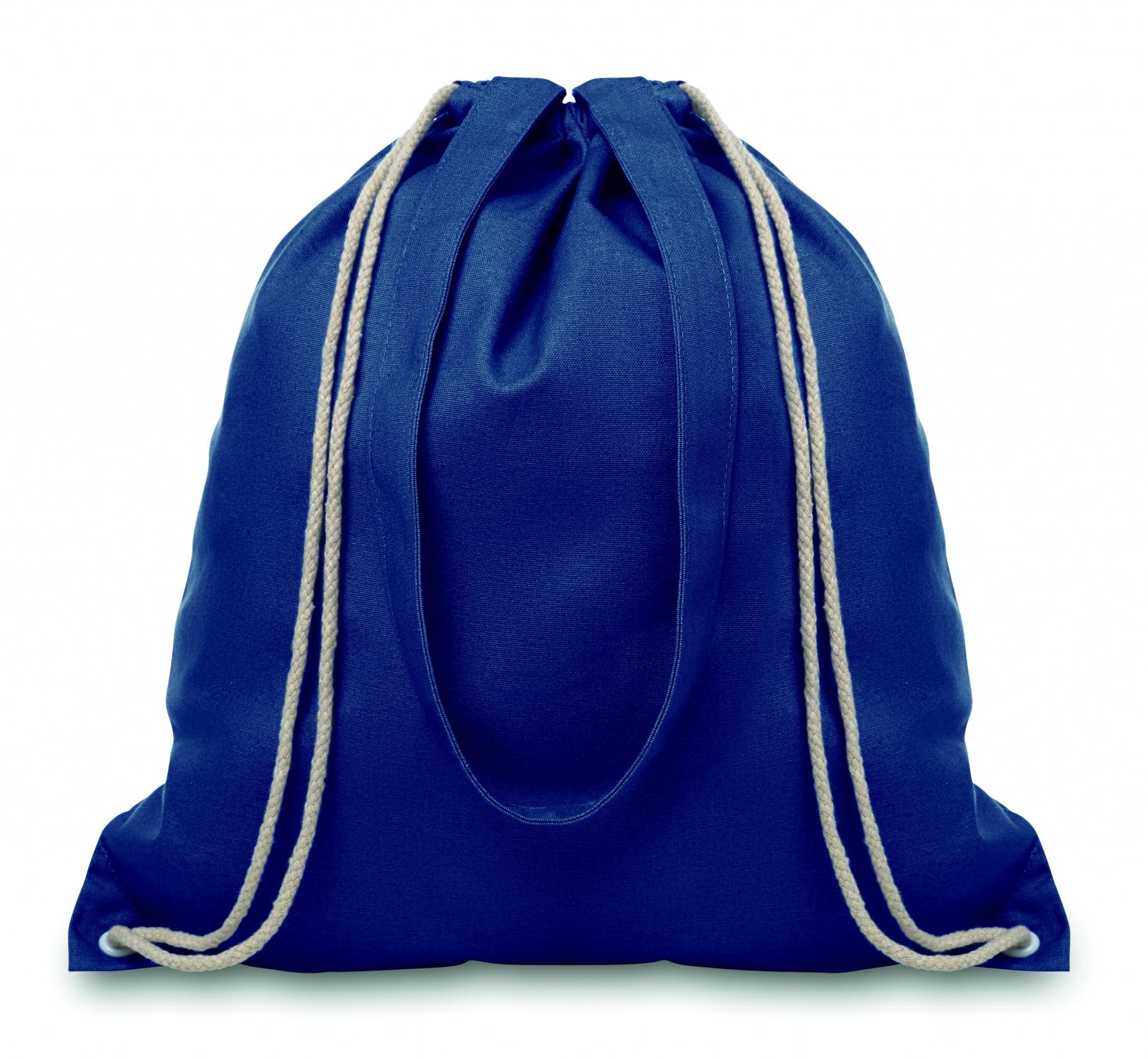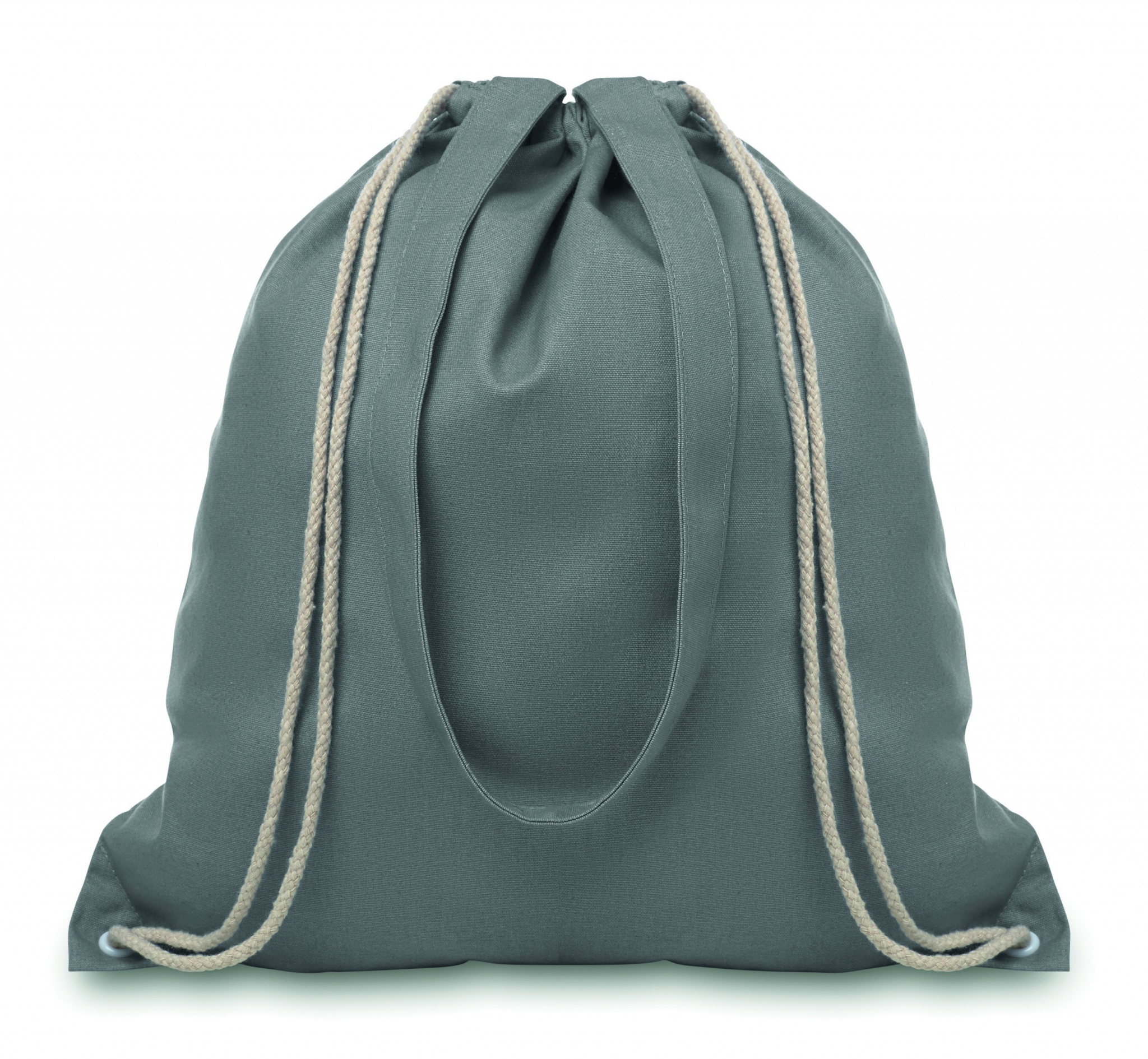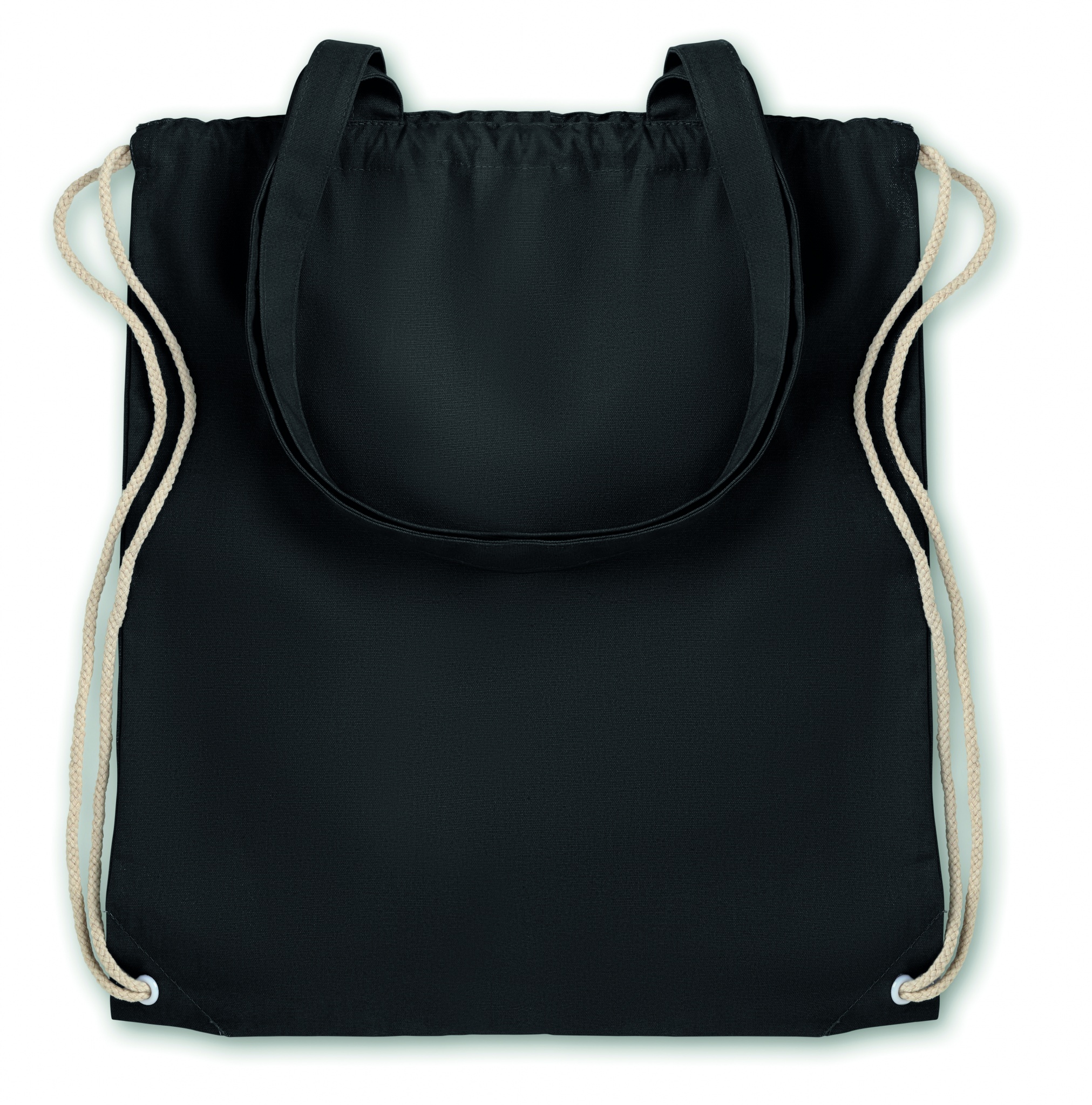 Kombinerad kasse och gymnastikpåse i bomullscanvas med långa handtag och dragsko somkan bäras som ryggsäck. Kvalité: 220 g/m2.