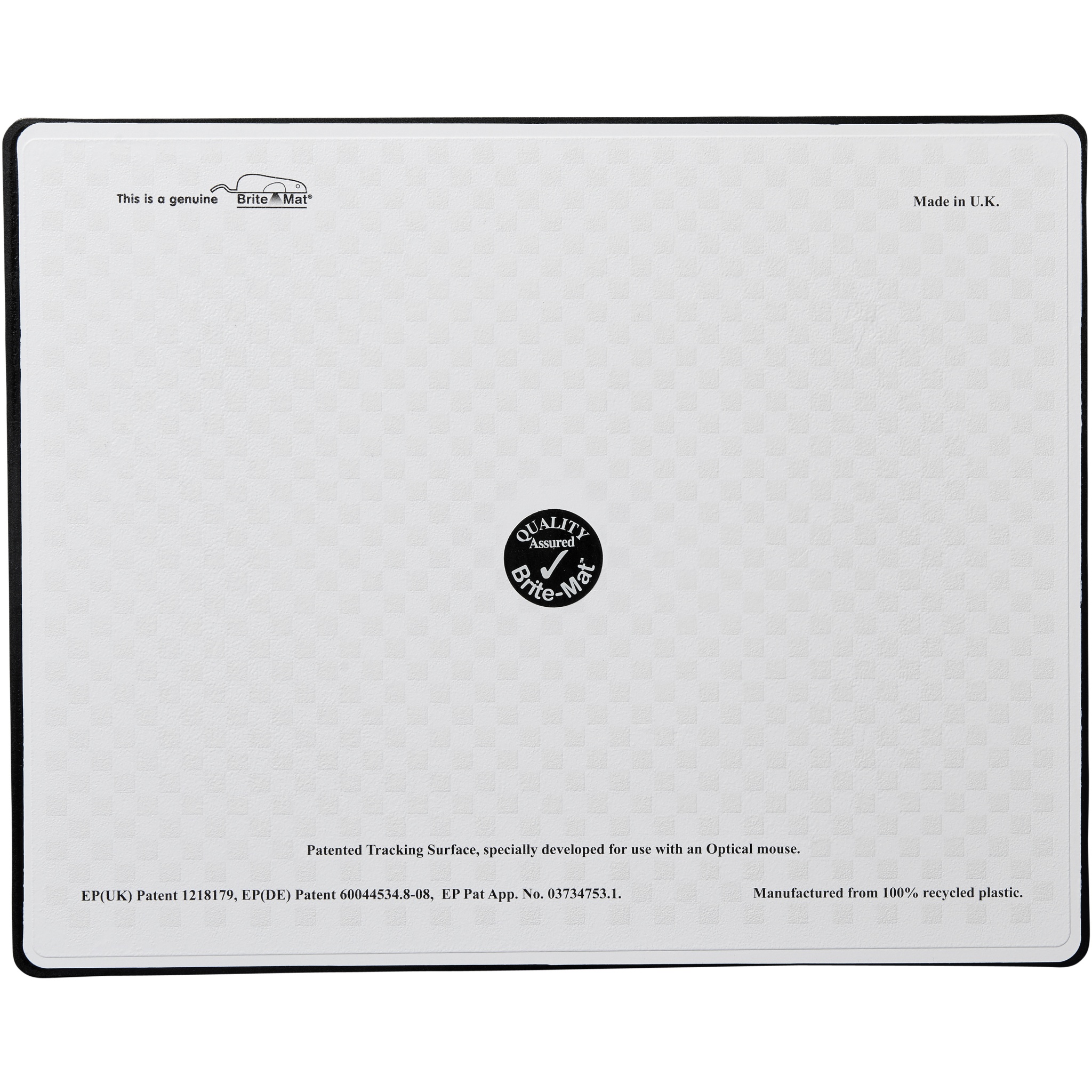 Brite-Mat® rektangulär musmatta. En av marknadens populäraste musmattor med hård ovansida. Enastående kvalitet tack vare den patenterade tekniken för ingjutning av dekor. Tillverkad i 100 % internt återvunnen plast. Muskontroll med 100 % perfektion både för vanliga datormöss med kula och optiska datormöss. Laminerat papper och återvunnen plast.