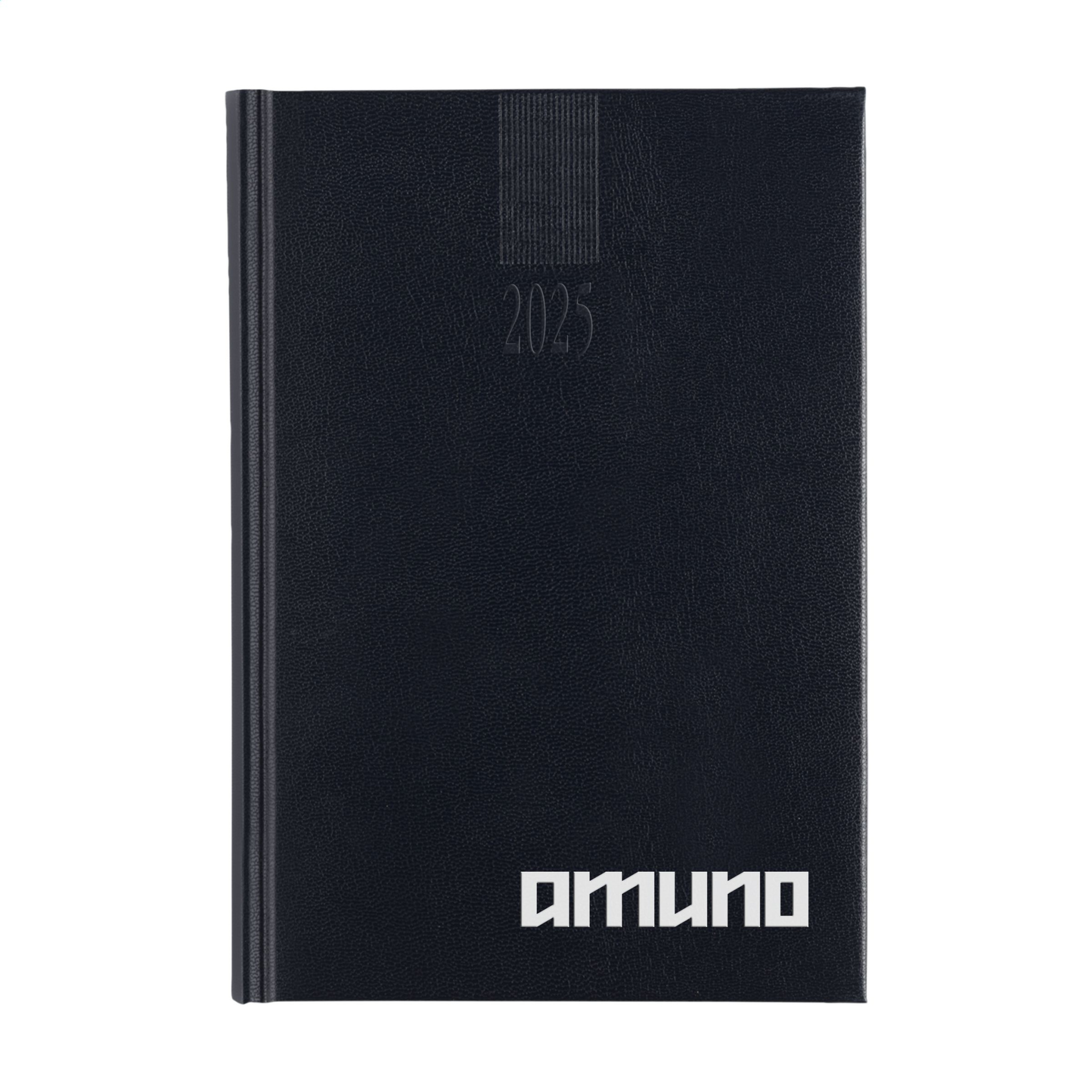 Kontorsdagbok på fyra språk: EN, NL, F och D. Med hållbart vadderat Balacron-omslag och årtal präglad på framsidan. 80 g vitt, FSC Mix-certifierat papper, stor veckoöversikt över två sidor, 2 färgtryck, trådbunden, veckoöversikt på två sidor, årsplanerare innevarande år och nästa år, extra användbar information. Nära A5 storlek.