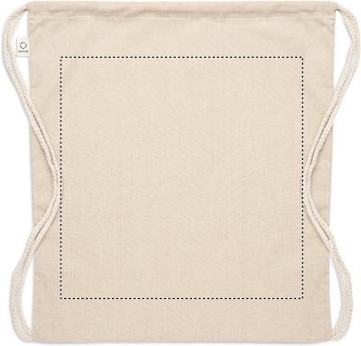 Gymnastikpåse i bomull av återvunna textilier (70 %) och RPET (30 %). 140 gr/m².
