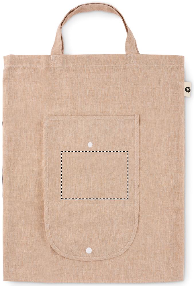 Hopvikbar kasse i 2-färgad återvunnen bomull och återvunnen polyester med långa handtag (20%/80%). Ca 140 gr/m². Den här artikeln kan krympa en aninmg vid tryckning.