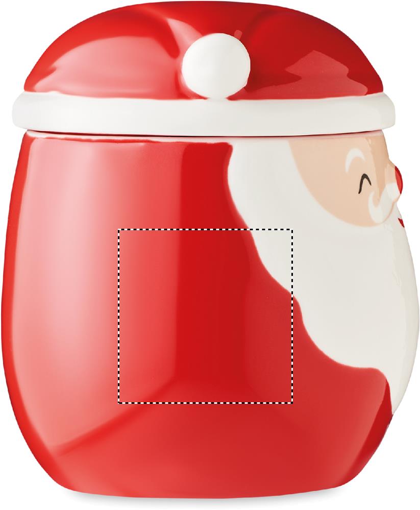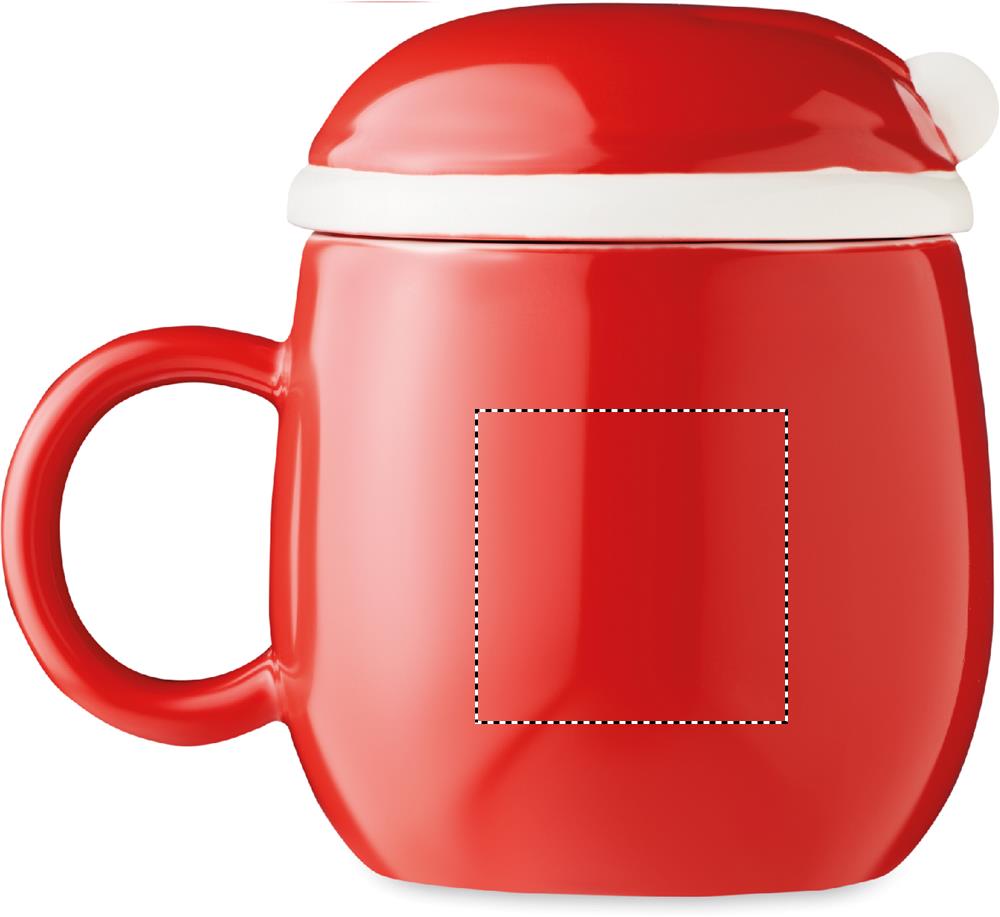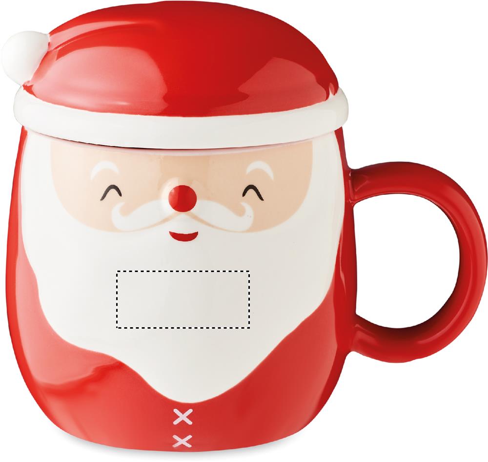 Keramik mugg med tomtedesign och lock. Kapacitet: 370 ml.