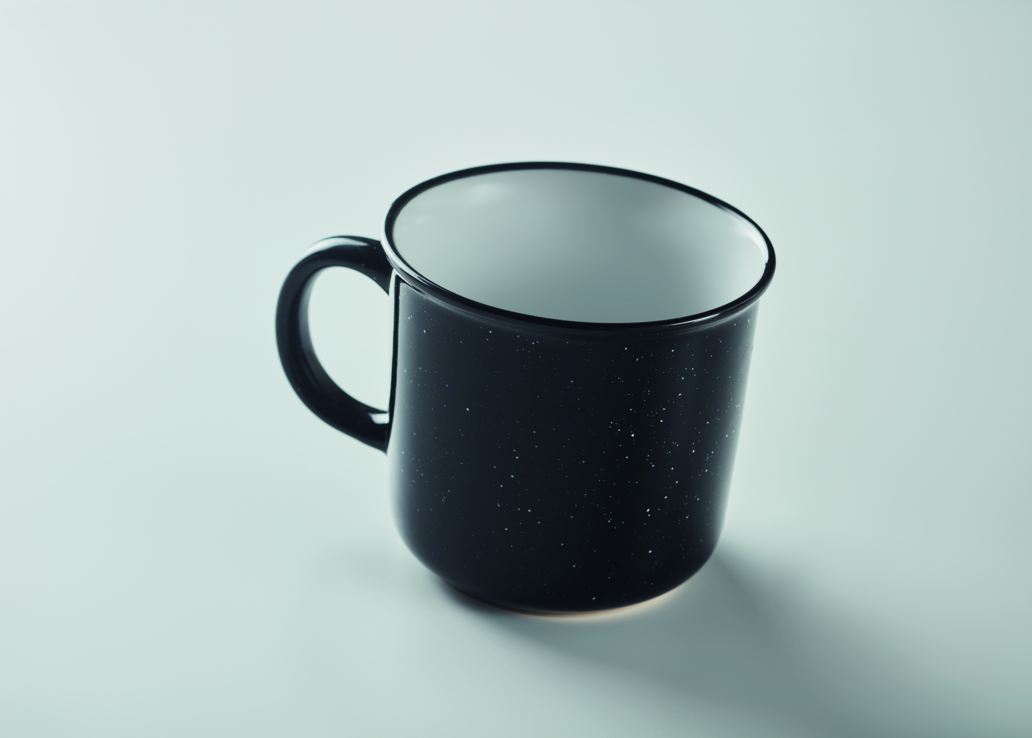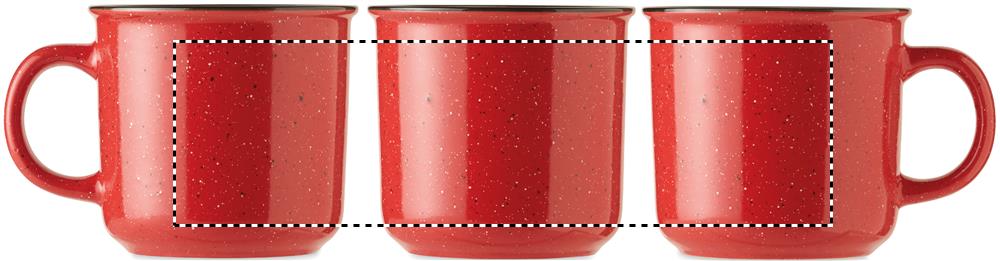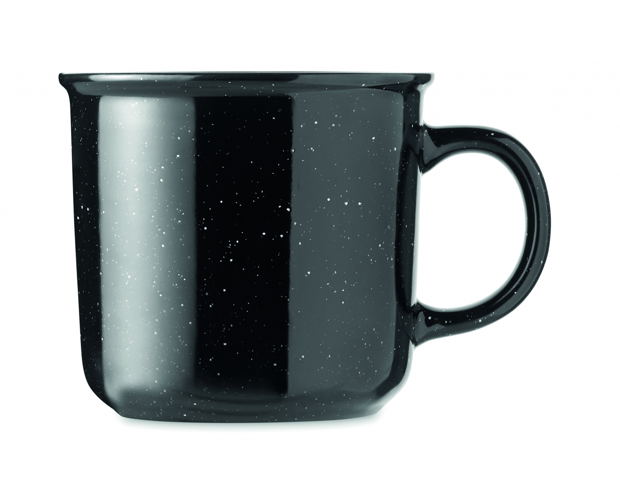 Stor mugg i keramik i vintagestil. På grund av det fläckiga mönstret kommer fläckar att vara synliga i den tryckta logotypen. Kapacitet: 400 ml.