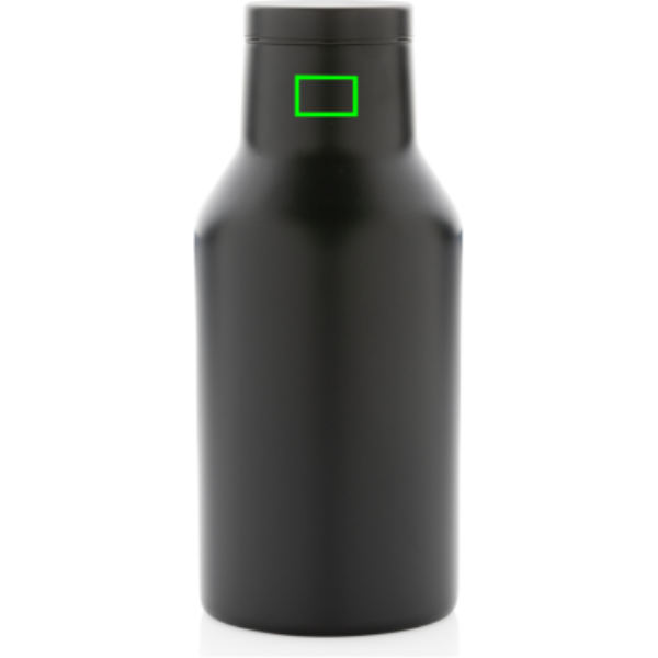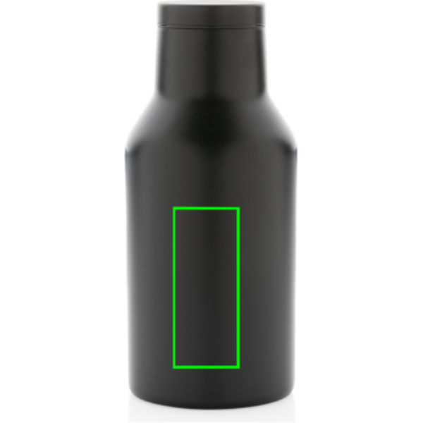 Kompakt flaska i RCS återvunnen stainless steel har ett skruvlock och en vid öppning för smidig rengöring och påfyllning. Flaskan i dubbelväggig återvunnen stainless steel håller din dryck varm i ca 3 timmar eller kyld i ca 6 timmar. Tillverkad av RCS (Recycled Claim Standard) certifierade återvunna material. RCS certifiering säkerställer en helt certifierad leveranskedja av de återvunna materialen. Totalt återvunnet innehåll: 89% baserat på total produktvikt. BPA fri. Volym: 300ml. Levereras i FSC®-certifierad kraft förpackning.