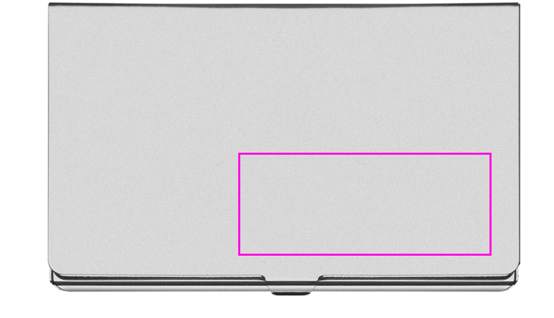 Snygg visitkortshållare i matt metall i en individuell kartong. Locket har den perfekta ytan för din logotyp, som kommer att graveras på mitten.