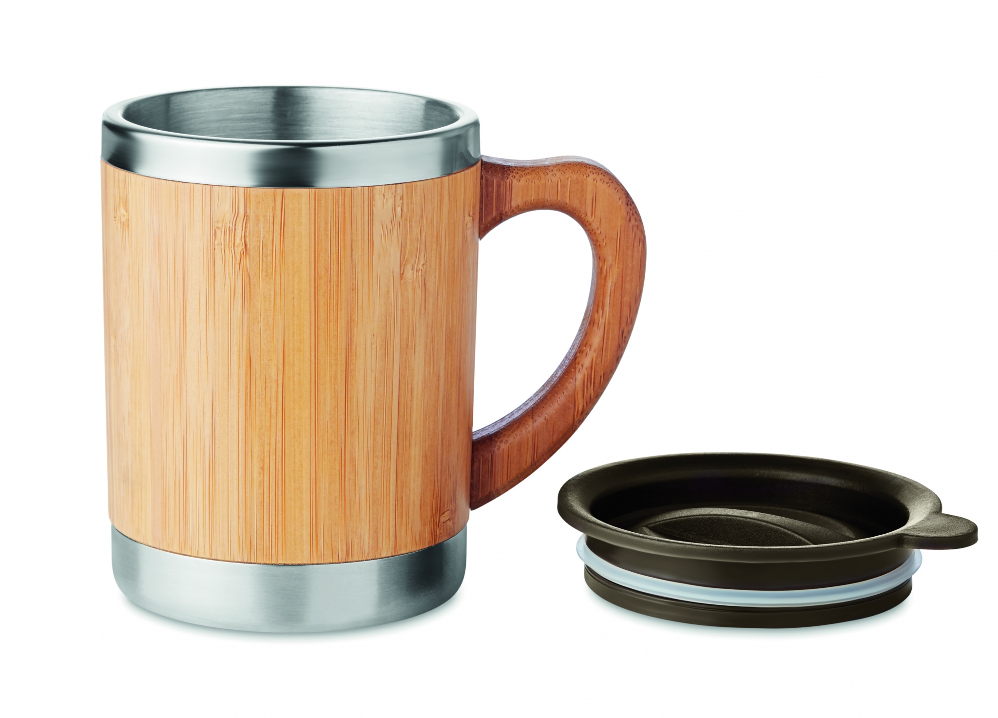 Logotrade kampanjprodukter bild: Mugg rostfritt och Bambu 300ml