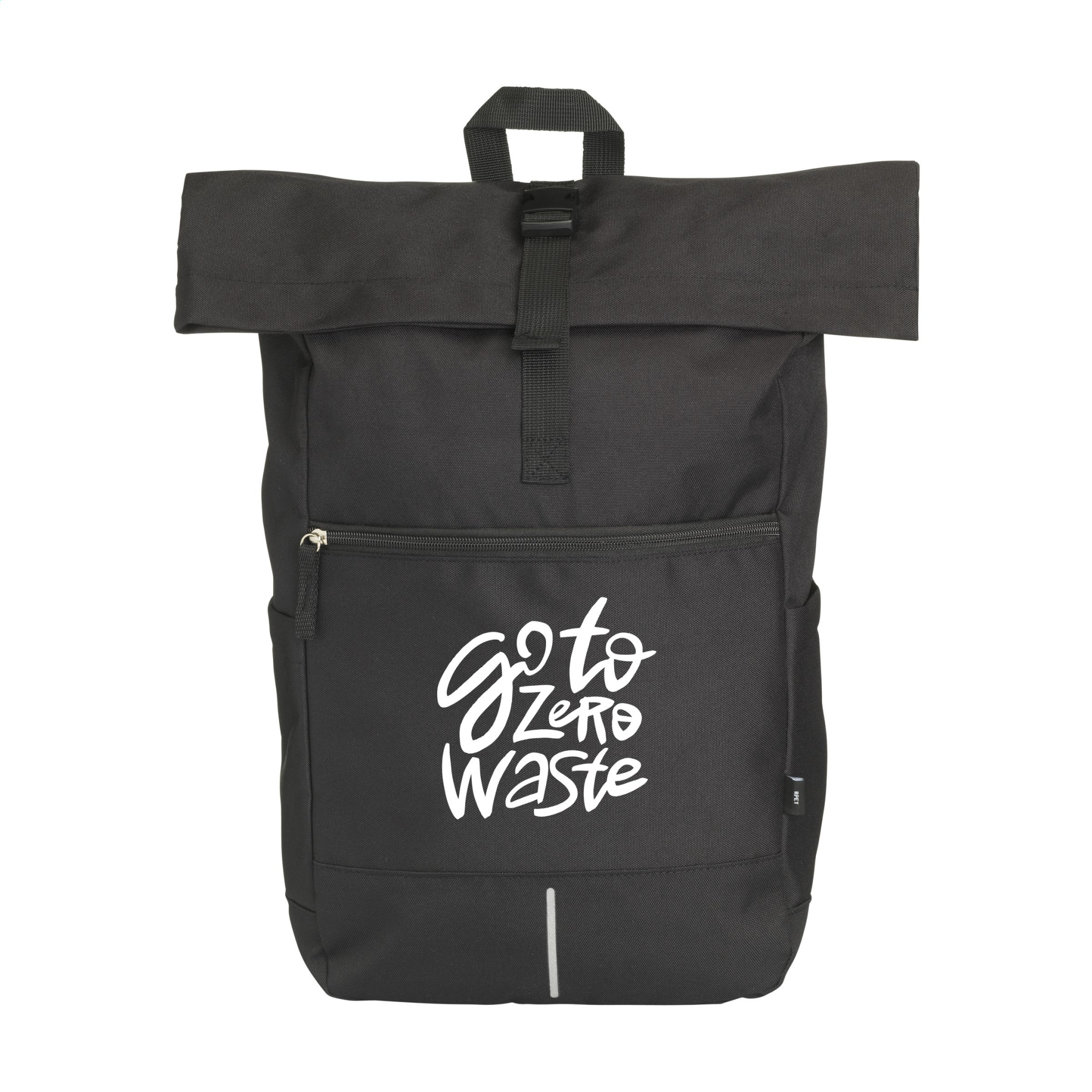 WoW! Praktisk, robust och vattentät urban "roll-top"-ryggsäck gjord av RPET-polyester (tillverkad av återvunna PET-flaskor). Ryggsäcken har ett stort innerfack med ett speciellt laptopfack (upp till 15,6”). Blixtlåsficka på framsidan med en reflekterande highlight under (förbättrar synlighet i mörker). Med 2 sidfickor, rygg av skum och vadderade, justerbara axelband för ökad bärkomfort, bärrem och behändig rullstängning med klicksystem upptill. Kapacitet ca. 20 liter.