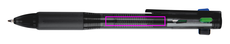 Plastkulpenna med 4 färgade skrivminor (blå, svart, röd och grön.) Din logotyp kommer att tryckas under klämman.