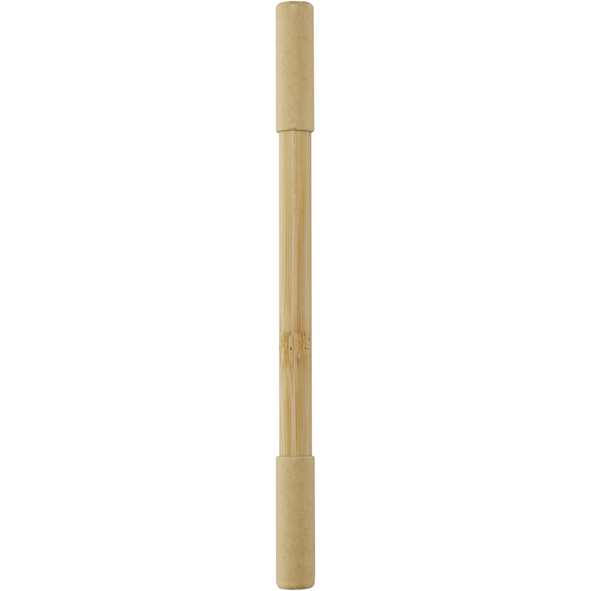 Den dubbla pennan Samambu i bambu har två huvuden: En kulspetspenna och en bläckfri penna. Den bläckfria sidan kräver inga bläckpatroner eller påfyllning. Pennans svarta grafitspets är utformad för att lämna synliga spår när den kommer i kontakt med skrivytan. Att välja en penna tillverkad av bambu främjar mer hållbara val och uppmuntrar användning av förnybara material. Kulspetspennan har svart bläck, en spetsstorlek på 1,00 mm och en skrivlängd på 600 meter. Den bläckfria pennans skrivlängd: 1500 meter.