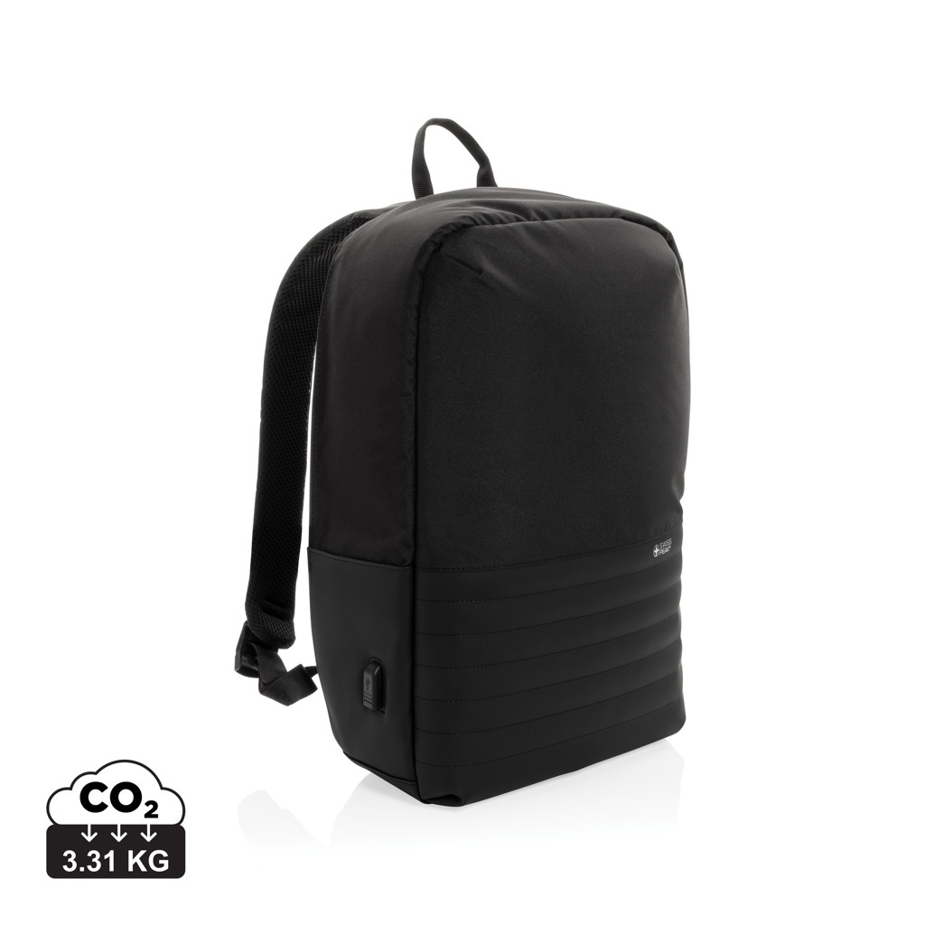 Swiss Peak AWARE™ 15" laptopryggsäck med anti-ficktjuv ryggöppning gör det enkelt att transportera dina tillhörigheter. Vadderade fack för laptop och surfplatta. RFID-skyddade fack för plånbok och pass. Anslut enkelt din powerbank till den integrerade USB laddningsporten och ladda din telefon eller surfplatta. Dolt fack på baksidan. Med AWARE™ spårämne som validerar användandet av genuint återvunna material. 2% av intäkterna för varje såld Aware™-produkt kommer att doneras till Water.org.