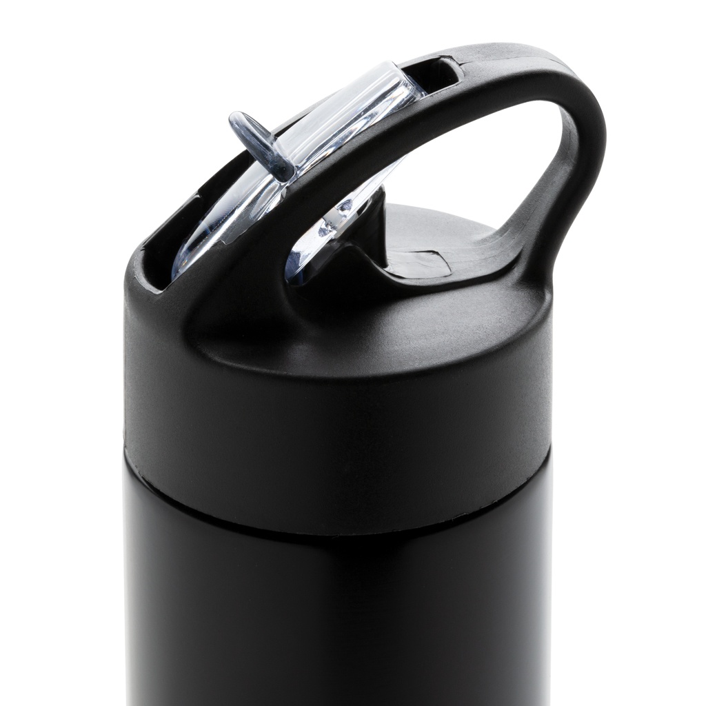 0,5L vattenflaska i SS, kork i PP med sugrör och praktisk öppning.